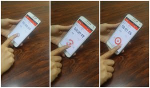 按下同心圓中間的紅色圓點,便開始紀錄您的騎腳踏車或是慢跑運動,而在運動的過程中,如果想要暫定或停止,則要先解除螢幕鎖定,按住畫面左方的鎖型圖式,然後往右拖曳,便可以解除螢幕鎖定,接著按下中間的正方形圖式,就可以將活動暫停。